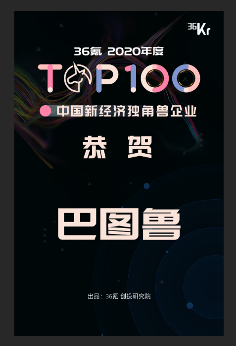 2020-11-0611月3日,權威媒體36氪發(fā)布了「2020年度中國新經濟獨角獸企業(yè)TOP100」,巴圖魯實力入榜,成為汽車后市場獨角獸代表性企業(yè)。